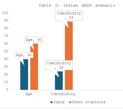 - Mean age group in India is 39 to 42 years as opposed to western countries with age of 60 years in ARDS.