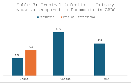 Tropical infectious diseases in India showcases higher incidences of ARDS with a different a etiology.