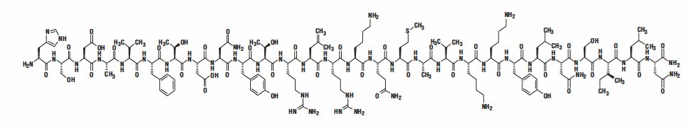 | IUPAC Condensed Formula | H-His-Ser-Asp-Ala-Val-Phe-Thr-Asp-Asn-Tyr-Thr-Arg-Leu-Arg-Lys-GIn-Met-Ala-Val-Lys-Lys-Tyr-Leu-Asn-Ser-lle-Leu-Asn-OH12 |